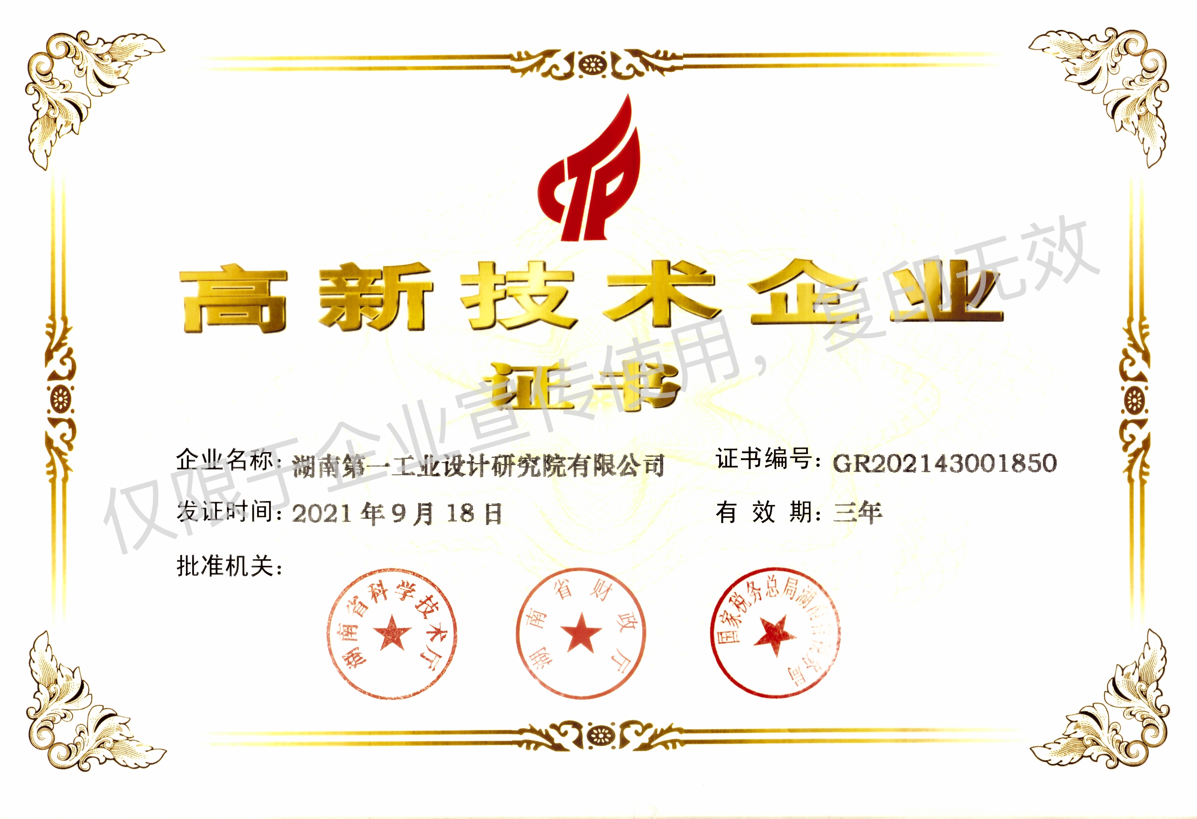 高新技術企業證書