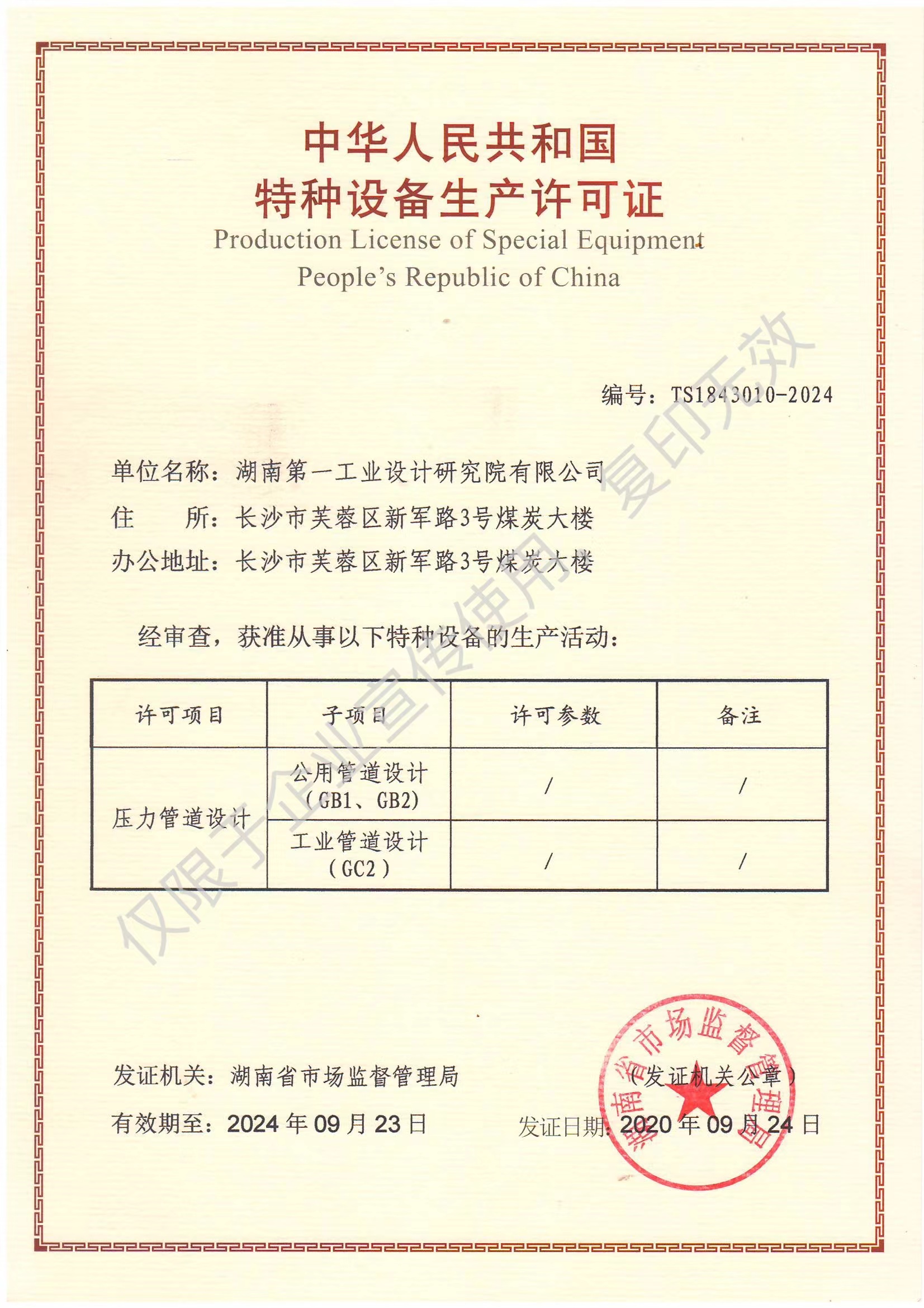 中華人民共和國特種設備生產許可證…